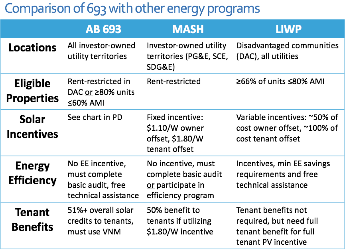 Good news – the California Public Utilities Commission (CPUC) finally released its Proposed Decision to implement Assembly Bill 693 creating the $1 billion Solar on Multifamily Affordable Homes (SOMAH) program for affordable rental properties located in investor-owned utility territories! As a reminder, the CPUC is in the process of establishing guidelines for the SOMAH program, which will provide up to $100 million in incentives per year for 10 years, depending on cap and trade revenues. Stakeholder comments are due on November 20, and a final decision will be issued by year-end.