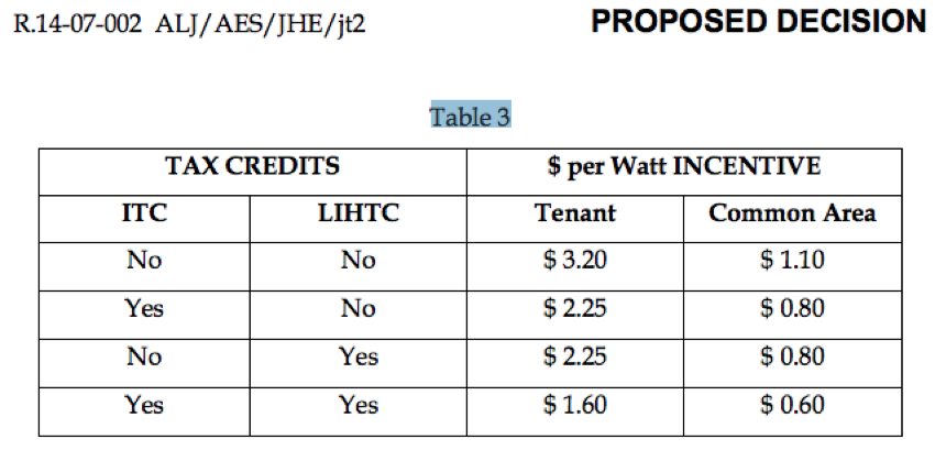 - Incentive levels for tenant areas and common areas vary depending on whether the project leverages ITC, LIHTC or both, without requiring a new market study, as we requested (see Table 3 on p. 37).